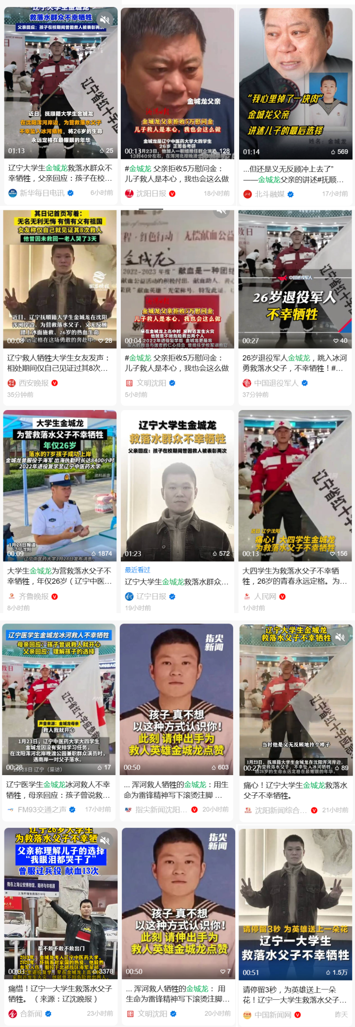 近日,在沈阳浑河岸边 26岁的退役军人金城龙 为营救落水父子坠入冰河不幸牺牲 他的英雄的事迹感动了无数网友 他曾是一名海军战士 服役于北部战区海军定州舰 2020年入伍,2022年退伍 在舰艇...